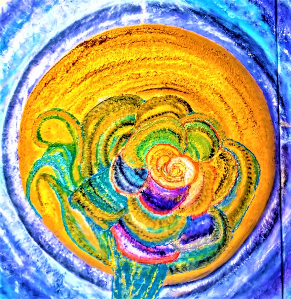 huile sur toile, détail de « Les Gardiens de la Source », huile sur toile, 2,00m x 2,00m, septembre 2021, Le Puy-en-Velay