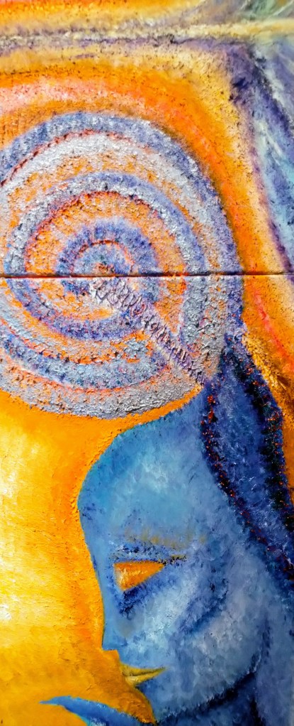 huile sur toile, détail de « Les Gardiens de la Source », huile sur toile, 2,00m x 2,00m, septembre 2021, Le Puy-en-Velay