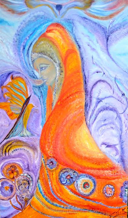 L’interconnexion : Le tableau exprime l’unité de tout ce qui existe : la déesse mère (la Terre), le faucon (le Ciel et l’Esprit), et les fleurs (la Vie manifestée). Cette interconnexion est une vérité fondamentale de la gnose et de la Tradition Primordiale, où tout est lié par une seule et même essence divine.