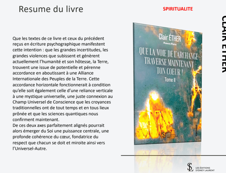 - Le public est en quête de sens. Face aux crises actuelles, de plus en plus de personnes se tournent vers des solutions dépassant le matériel. Elles cherchent des réponses aptes à relier la science et la spiritualité, et c’est exactement ce qu’offre cet ouvrage. Tout particulièrement destiné aux nouvelles générations assoiffées de sens dans un monde chaotique, il se positionne clairement comme passeur culturel et spirituel.