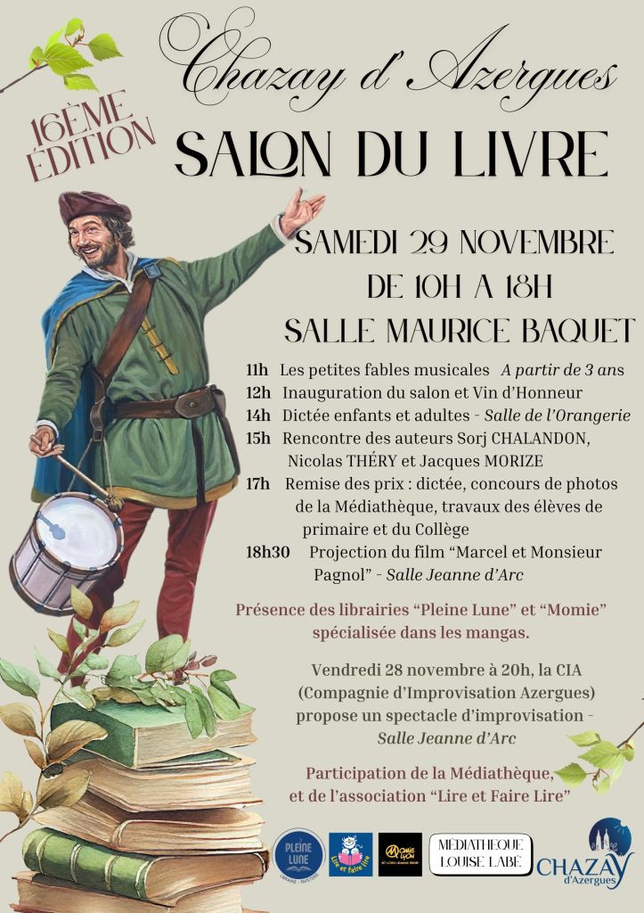 - Samedi 29 novembre – Chazay d’Azergues – Salon du livre